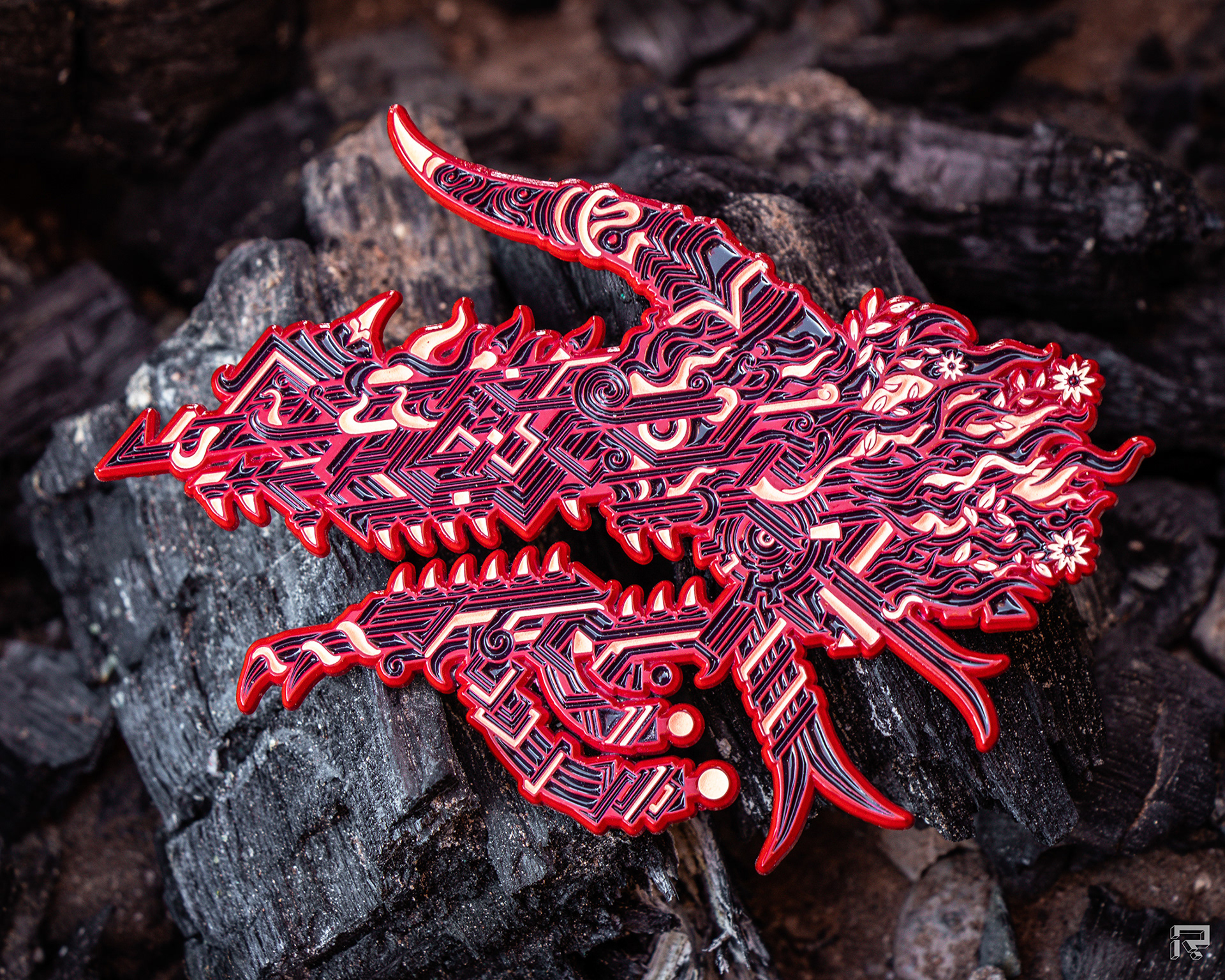 Back of Hailstone featuring unique embossed design, edition number, and enamel fill